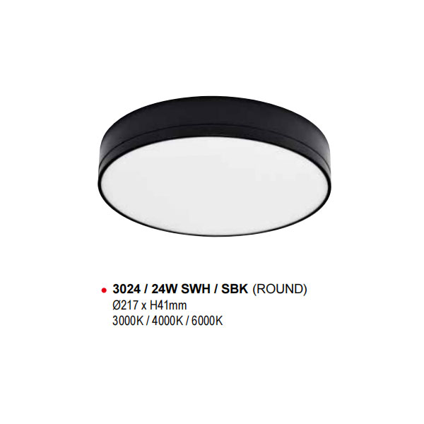 LUZ Ceiling Light 3024 / 24W SWH / SBK (ROUND)