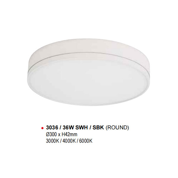 LUZ Ceiling Light 3036 / 36W SWH / SBK (ROUND)
