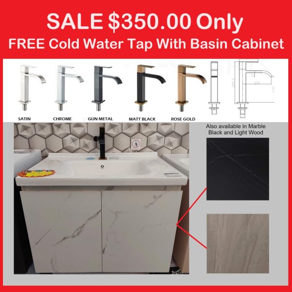 Waterproof Basin Cabinet With Insert Basin, L70cm x W48cm x H52cm, PROMOTION $350.00 with FREE Cold Water Tap. Limited time only, while stocks last