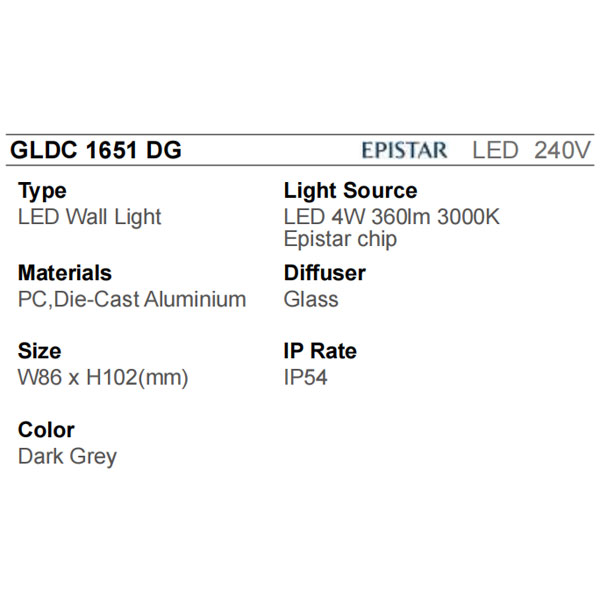 LUZ Wall Light GLDC 1651 DG